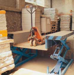 Pallet truck / Stackers / Fork trucks are used to bring material to the scissor table which lifts up & facilitates movement of above equipments into trucks for loading / unloading. Simple manual trollies can be used for non palletized loads.