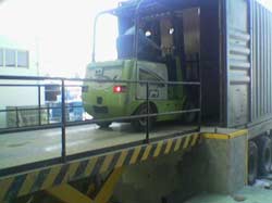 with dock plate & hand pallet truck. Fork lift at Hero Honda.