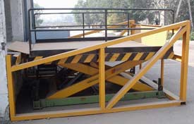 Tempo loading / unloading operations, lift for Handicapped person etc. The standard model has a capacity of 1 ton, open height 1200 mm platform size 1600 X 1100 mm. Lifting is by 415 V AC Hydraulic power pack (Indian or Imported). Controls are by push Button pendant for Up / Down movements.